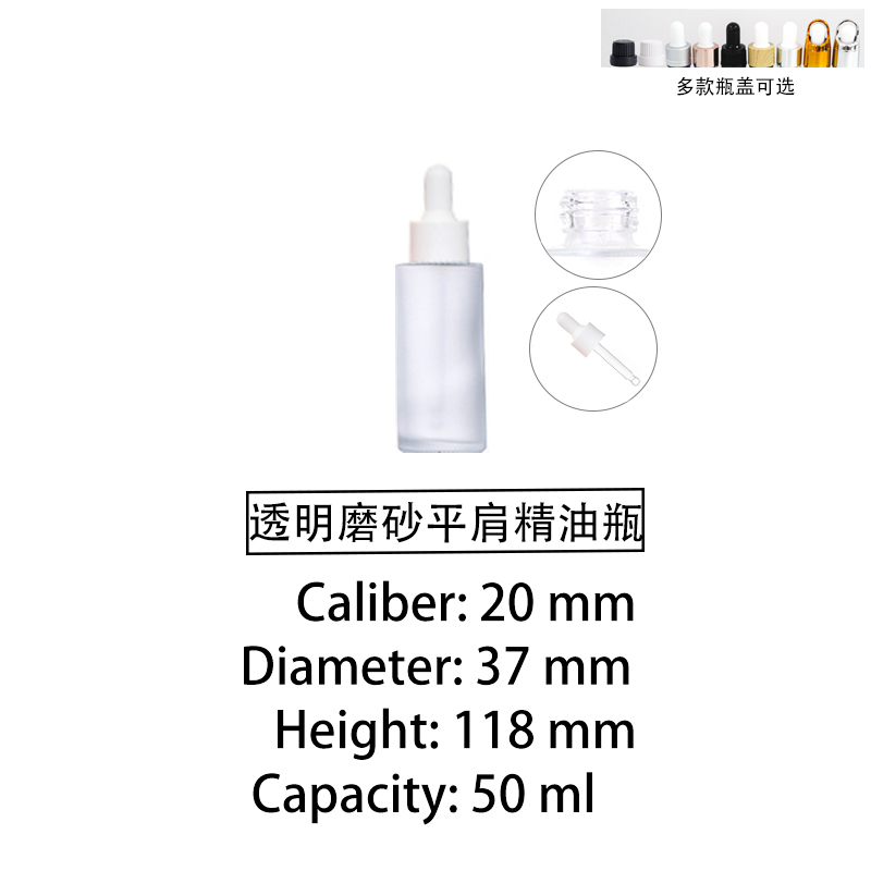 / 50ml Transparent frosted flat-shouldered essential oil bottle